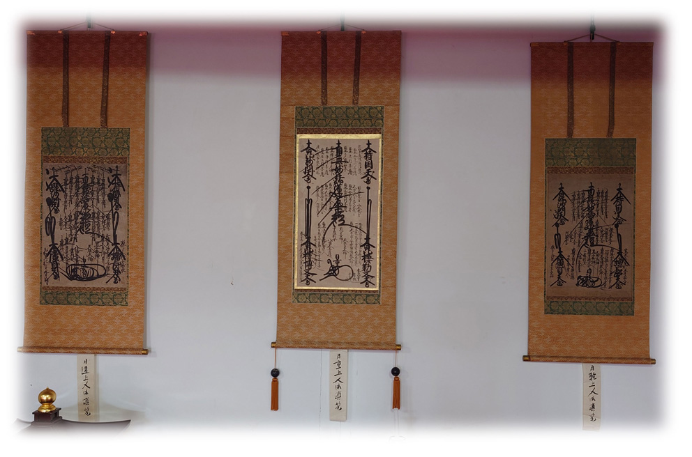 | 日蓮宗 身延山中興之三師 曼荼羅本尊 日重上人(本満寺第12世・身延山第20世) 日乾上人(本満寺第13世・身延山第21世) 日遠上人(本満寺第14世・身延山第22世) |